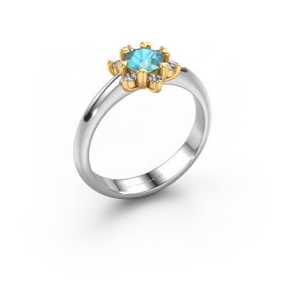 How would you describe your own style? Are you looking for something uniquely different? This cluster white gold Liesbeth ring is astonishing! Simply customize to your or her own liking. This ring is set with blue topaz. These blue topaz have been carefully selected because your ring must be adorned with nothing but the most beautiful gemstone. Wouldn't you agree? Our expert goldsmith will create your ring in our own crafting studios, where the blue topaz will be set with care. The ring will then be polished to perfection to give it that extra sparkle. It's a perfect ring for a woman of excellent taste!As soon as you finished designing your Liesbeth ring with our online tool, our goldsmiths will start their creative process of making your ring. This will be done with passion and care, according ancient crafting. On top of that, our jewels are made of eco-friendly materials. Simply customize online with our online tool, if you want any changes made. If you want specific changes made to your Liesbeth ring, that are unavailable in our online tool, please feel free to contact our expert designers.By using our modern techniques, we can design and customize the finest quality jewels with the utmost care for you. Our rings are always priced 30 percent lower than other jewelers. We make rings to order, so we don't have to maintain a large stock. If you have a certain budget, we are more than happy to advice you accordingly.To make it easier for you, we offer a 30 day return policy. Check our terms and conditions.