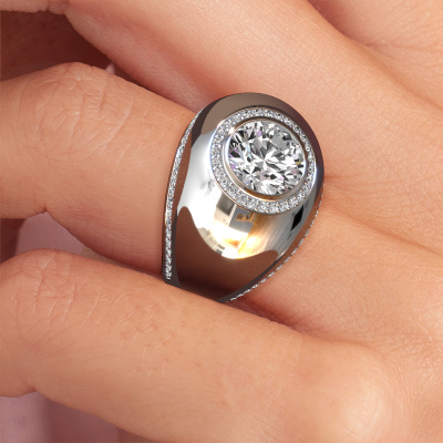 This is a stunning birthstones white gold Roxann ring. It is set with lab-grown diamond. A designer ring, fit for classy women. The ring is designed by our own expert goldsmiths. In our artisan studio, we use a combination of the latest techniques