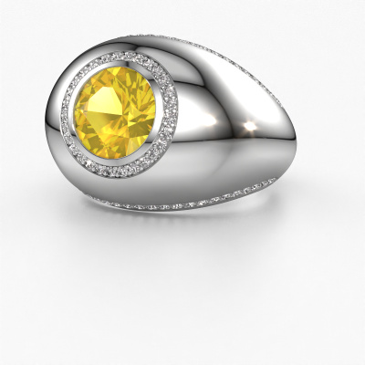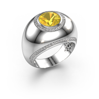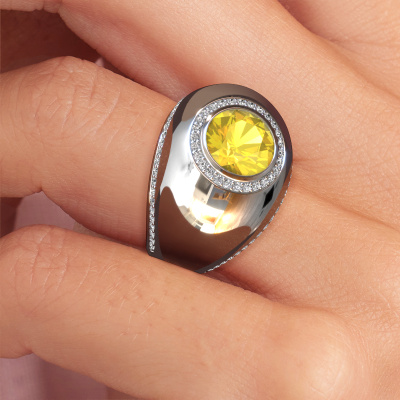 This is a stunning birthstones white gold Roxann ring. It is set with yellow sapphire. A designer ring, fit for classy women. The ring is designed by our own expert goldsmiths. In our artisan studio, we use a combination of the latest techniques and