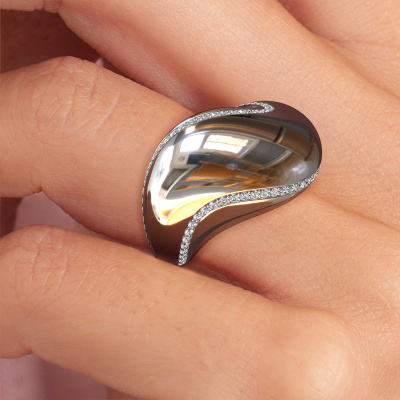This is a stunning tasteful white gold Phyliss ring. It is set with zirconia. A designer ring, fit for classy women. The ring is designed by our own expert goldsmiths. In our artisan studio, we use a combination of the latest techniques and ancient traditional craftsmanship, so we are able to create a perfectly designed ring. Our expert goldsmiths strive for perfection so they won't stop until a perfect ring, a true work of art, is created. A unique ring which matches your own style. The best part of this tasteful ring is that you can customize it to your own liking. Your style, your choice, your ring. On top of that, your design white gold ring will be made by hand with eco-friendly materials! Please feel free to easily customize the ring, using our online tool.After receiving your order, our goldsmiths will passionately start the creative process of making your ring in our own studio. Because we don't have a big stockpile, these costs will not be passed on to you. Our pricing is proof of that! We offer top quality jewels at lowest price, guaranteed.To make it easier for you, we offer a 30 day return policy. Check our terms and conditions.