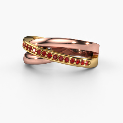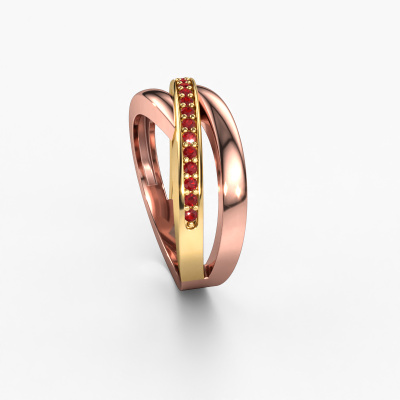 This ring called Colette is made of 14 Carat rose gold and is set with ruby. Are you in the market for a unique rose gold ring with a modern twist? Then this ring might suit you. Simply customize to your or her liking. It suits the contemporary modern woman. This wide ring is set with beautiful ruby. This has been carefully selected. Because your ring must be adorned with nothing but the most stunning gemstone. Our expert goldsmith will create your ring in our own studio, where the ruby will be set with great care. The ring will then be polished to perfection to create a stunning ring. Are you on a budget? Please feel free to contact us, so we can go discuss your options. We offer our rings at guaranteed best price, because we make them to order. You won't find such a price anywhere else!