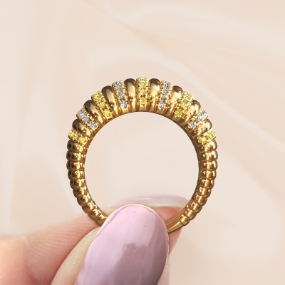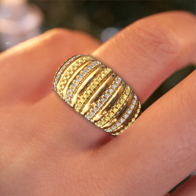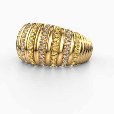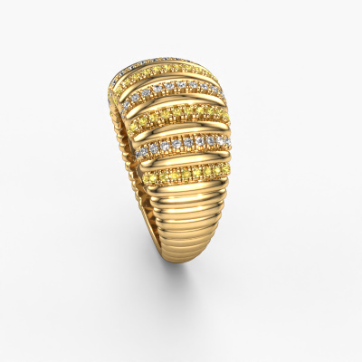This is a stunning wide gold Dawn 12mm ring. It is set with yellow sapphire. A designer ring, fit for classy women. The ring is designed by our own expert goldsmiths. In our artisan studio, we use a combination of the latest techniques and ancient traditional craftsmanship, so we are able to create a perfectly designed ring. Our expert goldsmiths strive for perfection so they won't stop until a perfect ring, a true work of art, is created. A unique ring which matches your own style. The wide Dawn 12mm ring, as shown here, can be customized to your liking. Our online tool offers many different options but please feel free to contact us if you want changes made to your Dawn 12mm ring, which are unavailable in our online tool.By using a combination of the latest modern techniques, combined with ancient crafting, we can make all our rings in our own studio. Each jewel is made to order. This is advantageous because we can offer you a price you won't find anywhere else.To make it easier for you, we offer a 30 day return policy. Check our terms and conditions.
