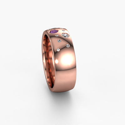 If you are looking for an exclusive, fantasy wedding ring with an exquisite look, this ring is perfect for you. Because it can be customized to your style, this wedding ring can be turned into a unique, exclusive piece of jewelry. This fantasy ladies wedding ring is a perfect combination of ancient craftsmanship, love, passion and the latest modern techniques. This fantasy WH0141L26BP wedding ring is set with amethyst 3 mm, is ±0.28 in (7 mm) wide and has a shiny finish. Simply customize your gemstones and colors with our online tool. Our jewel designers will make a 3D drawing of your design, so you can see the result. Our goldsmiths will subsequently make your wedding ring by hand, according ancient craftsmanship. Our goal is to make the wedding ring you have in mind. A unique wedding ring to match your style completely!Do you have specific wishes? Like a shiny ring, or a matte one? A wider band, or a smaller one? The possibilities of this wedding ring are endless. Be sure to contact our designers to adjust your ring to your personal taste. Did you see a ring somewhere, or do you have some special ideas of your own? Then don't hesitate to contact our designers and discuss your ideas for your own set of beautiful wedding rings. We are up for the challenge of creating the ring exactly the way you want it!After receiving your order, our goldsmiths will start the creative process of making your wedding rings in our own crafting studio. We don't keep stock. This is advantageous because these costs will not be passed on to you. Therefore, we can offer the finest quality jewelry at exceptionally low prices.To make it easier for you, we offer a 30 day return policy. Check our terms and conditions.