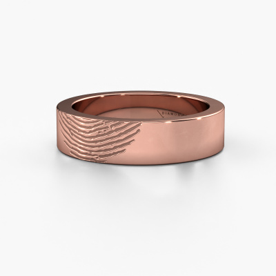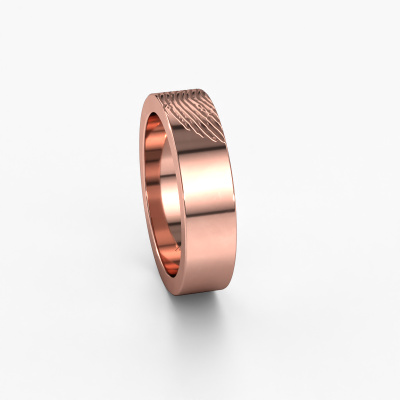 What could be more unique than a fingerprint? That makes this ladies wedding ring special. A personal fingerprint of your loved one, engraved tot the symbol of your everlasting love. Wouldn't it be lovely to slide this trendy wedding ring around the finger of your partner on your wedding day? How does it work? First you order the wedding ring after customizing it to your liking. Once your order is placed, you send us an e-mail with the fingerprint you would like to use. For further instructions on how to make a fingerprint, check our database at the bottom of this page. This Bernice wedding ring has an ±0.20 in (5 mm) width. The jewel designer, member of a specialized team, will make a graphic 3D design of your wedding ring. If it pleases you, you can also order a ring dummy so you can try it on and see your ring before creation. Subsequently, our goldsmith will create your unique wedding ring with great care in our own crafting studio. A meticulous job, because both creating as well as finishing your ring requires a keen eye. And that is what makes our craft special. Your unique wedding ring is the result of true passionate craftsmanship!Be inspired by our designs, and adjust this wedding ring to your own personal taste: wider or smaller, shiny or matte? No problem! Even if you have ideas of your own for special wedding rings, our jewelry designers are lined up to help you design the ring of your dreams. don't hesitate to contact us!By combining our modern techniques with ancient crafting, we can design and customize the finest quality jewels with the utmost care for you at the best price. Our wedding rings are always priced 30% lower than those of other jewelers. We make wedding rings to order so we don't have to maintain a large stock.To make it easier for you, we offer a 30 day return policy. Check our terms and conditions.