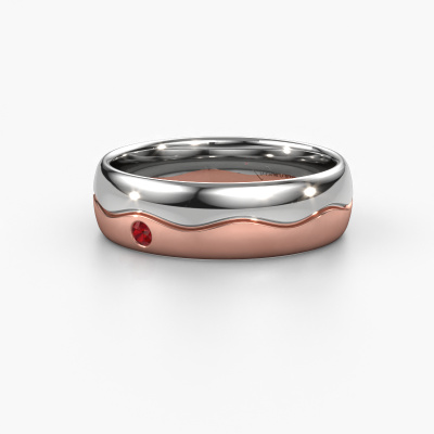 A unique ladies wedding ring, especially designed by our own jewel designers. An unusual ring that matches each style. This modern wedding ring WH0701L36AP is made by hand by our goldsmiths in our own crafting studio. By using a combination of the most modern techniques and ancient craftsmanship, your WH0701L36AP ring is created to perfection. This ladies wedding ring has an ±0.24 in (6 mm) width and has a shiny finish. Here, the modern white gold wedding ring is shown in the combination white gold with rose gold. An exquisite wedding ring, a celebration of your wedding day!