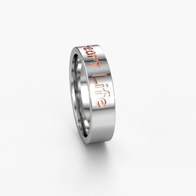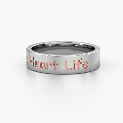 This ladies wedding ring with a personal inscription is a truly unique wedding ring. A personal text, words with meaning, is what makes this a truly unique personal item. Part of lyrics to a special song, a special word or the name of a loved one. Make your white gold wedding ring as personal as possible. More regarding a personal engraving can be found in our databank, at the bottom of this page. This WH2130L15A wedding ring for ladies has a width of ±0.20 in (5 mm). You can choose the combination of precious metals of your preference in our online tool. Anything goes! It is wise to browse through the characteristics of each different precious metal. For example, gold and silver are softer metals. Carat is determined by the amount of added extra metals. If the goldsmith doesn't add a lot, carat is higher and the wedding ring will be softer. If he adds more metals, the jewel has a lower amount of carat. A softer precious metal can still be used for your contemporary wedding ring! If you prefer a precious metal which will last a lifetime, we recommend platinum. This is the most solid and durable metal our goldsmith uses.Do you have special preferences regarding your wedding ring? For instance, a smaller or a wider band? Or perhaps a shiny or a matte ring? There are numerous variations possible. You can always discuss the possibilities with our jewelry designers. If you have certain wedding rings in mind, our designers will gladly help by drawing the rings of your dreams. Be sure to contact us!Because we design and deliver our own wedding rings, we can offer you wedding rings at a price you won't find anywhere else. A ring is made to order, which helps prevent excess supplies, so we can make you a great price offer.To make it easier for you, we offer a 30 day return policy. Check our terms and conditions.