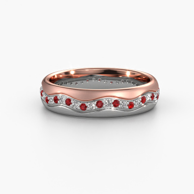 An extraordinary eternity ladies wedding ring! As unique as your relationship! No two people are alike and that is why you want a unique wedding ring. This modern WH0803L35BM wedding ring is made by our jewel designers and crafted by hand by our goldsmith. In that process, We use pure craftsmanship combined with the latest techniques to achieve the best result. Our goldsmith strives for absolute perfection. A unique, handmade wedding ring, made to memorialize your big day! This modern WH0803L35BM wedding ring is set with ruby, is ±0.20 in (5 mm) wide and has a shiny finish. You can choose the combination of precious metals of your preference in our online tool. Anything goes! It is wise to browse through the characteristics of each different precious metal. For example, gold and silver are softer metals. Carat is determined by the amount of added extra metals. If the goldsmith doesn't add a lot, carat is higher and the wedding ring will be softer. If he adds more metals, the jewel has a lower amount of carat. A softer precious metal can still be used for your modern wedding ring! If you prefer a precious metal which will last a lifetime, we recommend platinum. This is the most solid and durable metal our goldsmith uses.This wedding ring can also serve as a source of inspiration. Would you like the ring to have a matte or shiny finish (at no additional cost), or would you prefer it to be wider or narrower? Anything is possible. Because there are countless variations, we can’t show everything on our website. Do you have an idea for beautiful wedding rings, or have you seen a stunning set of wedding rings elsewhere? Feel free to contact us; our designers are ready to assist you.After receiving your order, our goldsmiths will start the creative process of making your wedding rings. We don't keep stock. This is advantageous because these costs will not be passed on to you. Therefore, our quality wedding rings are always priced 30 percent lower than those of other jewelers.To make it easier for you, we offer a 30 day return policy. Check our terms and conditions.