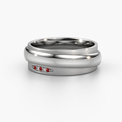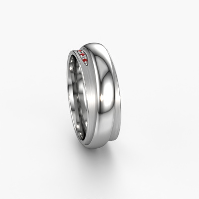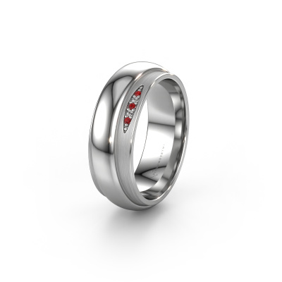 A truly stylish 14 Carat modern wedding ring! This exquisite ladies wedding ring, as shown above, is set with round ruby. Our goldsmiths make each white gold wedding ring by hand in our own artisan studio and because of that, the ruby are set with the utmost precision. This causes light to reflect evenly from every angle of the ruby. The width of this modern WH2038L wedding ring is ±0.28 in (7 mm) and the finish is mat/shiny. After ordering your wedding ring, our goldsmith will start creating your wedding ring immediately. Did you know we use the latest modern techniques, combined with ancient craftsmanship? This helps to create a 3D design of your jewel. You can order a dummy ring, if you please. This way you can check if the wedding ring meets your standard. Then, our goldsmith, who strives for perfection, will create your ring in our own artisan studio completely by hand. We feel passionate creating a unique ring each time. One which is finished to perfection. In the end, you get a wedding ring which matches your wishes.Be inspired by our designs, and adjust this wedding ring to your own personal taste: wider or smaller, shiny or matte? No problem! Even if you have ideas of your own for special wedding rings, our jewelry designers are lined up to help you design the ring of your dreams. don't hesitate to contact us!After receiving your order, our goldsmiths will start the creative process of making your wedding rings in our own crafting studio. We don't keep stock. This is advantageous because these costs will not be passed on to you. Therefore, we can offer the finest quality jewelry at exceptionally low prices.To make it easier for you, we offer a 30 day return policy. Check our terms and conditions.