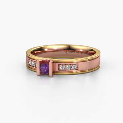 This modern ladies wedding ring is a stunning, contemporary wedding ring which truly symbolizes your unique love! Perfectly suited for men with a contemporary style. Simply customize the ring to your liking. Our goldsmith would take on any challenge of creating a perfect ring and will work on your ring, designed by you, in our own artisan studio. He will carefully and passionately create your WH2108L14A wedding ring by hand whilst using the most modern techniques, combined with pure craftsmanship. And this results in a unique, contemporary ring! This modern WH2108L14A wedding ring is set with round amethyst, is ±0.16 in (4 mm) wide and has a shiny finish. You can choose the combination of precious metals of your preference in our online tool. Anything goes! It is wise to browse through the characteristics of each different precious metal. For example, gold and silver are softer metals. Carat is determined by the amount of added extra metals. If the goldsmith doesn't add a lot, carat is higher and the wedding ring will be softer. If he adds more metals, the jewel has a lower amount of carat. A softer precious metal can still be used for your modern wedding ring! If you prefer a precious metal which will last a lifetime, we recommend platinum. This is the most solid and durable metal our goldsmith uses.Be inspired by our designs, and adjust this wedding ring to your own personal taste: wider or smaller, shiny or matte? No problem! Even if you have ideas of your own for special wedding rings, our jewelry designers are lined up to help you design the ring of your dreams. don't hesitate to contact us!Because we design and deliver our own wedding rings, we can offer you wedding rings at a price you won't find anywhere else. A ring is made to order, which helps prevent excess supplies, so we can make you a great price offer.To make it easier for you, we offer a 30 day return policy. Check our terms and conditions.