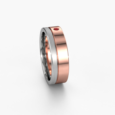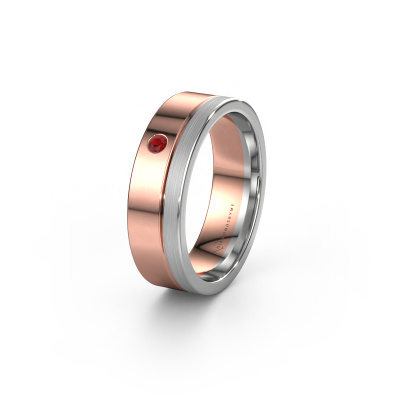 This modern mat/shiny ladies wedding ring with flat profile is an extraordinary ring to memorialize your love. A timeless wedding ring set with carefully selected ruby. In this example, the rose gold WH0301L16APM wedding ring is set with round ruby 2 mm. Our goldsmiths use the latest modern techniques, combined with ancient craftsmanship and they will make your ring in our own artisan studio. Resulting in a unique, handmade ±6x1.7 mm wedding ring, which was created to perfection, and matches your style flawlessly.