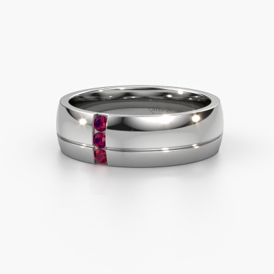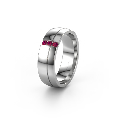A unique two-tone white gold ladies wedding ring, designed by you, and then artfully crafted by our goldsmith in our own artisan studio! A beautiful symbol, reflecting your love, which you carry with you for a lifetime! Each ring we offer is artfully forged by hand in our own crafting studio. This makes it possible for us to create you a ring which is customized to your liking, completely shiny your style. This modern WH0223L56A wedding ring is set with rhodolite, is ±0.24 in (6 mm) wide and has a shiny finish. The jewel designer, member of a specialized team, will make a graphic 3D design of your wedding ring. If it pleases you, you can also order a ring dummy so you can try it on and see your ring before creation. Subsequently, our goldsmith will create your unique wedding ring with great care in our own crafting studio. A meticulous job, because both creating as well as finishing your ring requires a keen eye. And that is what makes our craft special. Your unique wedding ring is the result of true passionate craftsmanship!By the way, you can be inspired by this wedding ring and have it further adjusted to your taste. Do you prefer a smaller band or a wider one? Do you prefer a shiny ring or a matte one? Anything is possible. Also, if you have an idea of your own for extraordinary wedding rings, or if you have seen a beautiful set somewhere else that you really like and would like to have adjusted to your personal taste: no problem! don't hesitate to contact us. Our designers will gladly discuss your possibilities with you!After receiving your order, our goldsmiths will start the creative process of making your wedding rings. We don't keep stock. This is advantageous because these costs will not be passed on to you. Therefore, our quality wedding rings are always priced 30 percent lower than those of other jewelers.To make it easier for you, we offer a 30 day return policy. Check our terms and conditions.