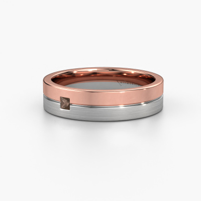 A unique two-tone rose gold ladies wedding ring, designed by you, and then artfully crafted by our goldsmith in our own artisan studio! A beautiful symbol, reflecting your love, which you carry with you for a lifetime! Each ring we offer is artfully forged by hand in our own crafting studio. This makes it possible for us to create you a ring which is customized to your liking, completely mat/shiny your style. This modern WH0201L15ASQPM wedding ring is set with smokey quartz, is ±0.20 in (5 mm) wide and has a mat/shiny finish. You can choose the combination of precious metals of your preference in our online tool. Anything goes! It is wise to browse through the characteristics of each different precious metal. For example, gold and silver are softer metals. Carat is determined by the amount of added extra metals. If the goldsmith doesn't add a lot, carat is higher and the wedding ring will be softer. If he adds more metals, the jewel has a lower amount of carat. A softer precious metal can still be used for your modern wedding ring! If you prefer a precious metal which will last a lifetime, we recommend platinum. This is the most solid and durable metal our goldsmith uses.Be inspired by our designs, and adjust this wedding ring to your own personal taste: wider or smaller, shiny or matte? No problem! Even if you have ideas of your own for special wedding rings, our jewelry designers are lined up to help you design the ring of your dreams. don't hesitate to contact us!After receiving your order, our goldsmiths will start the creative process of making your wedding rings in our own crafting studio. We don't keep stock. This is advantageous because these costs will not be passed on to you. Therefore, we can offer the finest quality jewelry at exceptionally low prices.To make it easier for you, we offer a 30 day return policy. Check our terms and conditions.