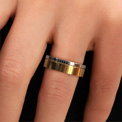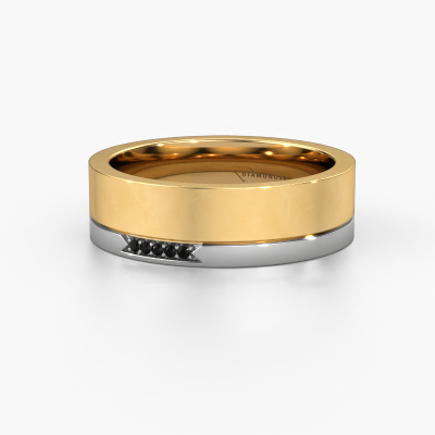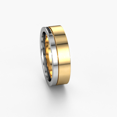 What a perfect combination of two different precious metals. They seem to reinforce each other in the modern design of this ring! Our goldsmith would be honored to create a unique ring for you, customized to your liking. Each ladies weddings ring we offer is artfully crafted by hand in our own artisan studio. That makes it possible for us to turn modern into reality and helps create your own personal ring, customized to your style. This modern WH0336L16A ladies weddings ring is set with round black diamond, is ±0.24 in (6 mm) wide and has a shiny finish. Gold represents love and therefore our goldsmith loves using it in the design of your modern weddings ring. We are a proud member of the Responsible Jewellery Council. This means we only use eco-friendly gold. Something we take great pride in, obviously. It is also possible to use your own gold in the design of your weddings ring. Each jewel is made by hand in our own artisan studio so we can offer this option. This gives you the opportunity to add an extra personal touch to your ring. A ring with its own history!By the way, you can be inspired by this weddings ring and have it further adjusted to your taste. Do you prefer a smaller band or a wider one? Do you prefer a shiny ring or a matte one? Anything is possible. Also, if you have an idea of your own for extraordinary wedding rings, or if you have seen a beautiful set somewhere else that you really like and would like to have adjusted to your personal taste: no problem! don't hesitate to contact us. Our designers will gladly discuss your possibilities with you!After receiving your order, our goldsmiths will passionately start the creative process of making your wedding rings in our own artisan studio. Because we do not maintain a large stockpile, we can offer our jewelry at a lower price than other jewelers. Our pricing is proof of that! We offer top quality jewels at lowest price, guaranteed.To make it easier for you, we offer a 30 day return policy. Check our terms and conditions.