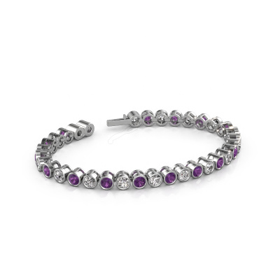 This elegant and timeless white gold tennis bracelet can easily be combined with many different styles of fashion. The Allegra 4 mm tennis bracelet is pave set with stunning amethysten total 4 mm, which are set with great care so light reflects perfectly. Because your fashionable tennis bracelet is handmade, extra care is taken in finishing the tiniest details to perfection. Did you know, the tennis bracelet is named after Chris Evert, the tennis player? She lost her tennis bracelet during the US Open of 1987 and the match was stopped to retrieve her precious diamond line tennis bracelet. The tennis bracelet is called tennis bracelet ever since and many celebrities such as Serena Williams and Katy Perry have been spotted wearing them. Due to its comfort and elegance the tennis bracelet continues to be a popular piece of jewelry. What could possibly be more beautiful than a personally designed fashionable tennis bracelet, handmade by yours truly? Please, feel free to customize each model by choosing different precious metals and gemstones. This makes your tennis bracelet truly unique. This tennis bracelet can be customized to your liking. It goes without saying that you can also ask us for help. We are more than willing to assist in designing your fashionable tennis bracelet. If you like but still have specific wishes concerning customizing your design, such as adding a gemstone which isn't mentioned in the list, feel free to contact us. We will gladly inform you on different options.Our team of talented, passionate designers add new tennis bracelet designs to our online collection daily. Our objective in doing so, is to be able to offer you a wide variety of jewels. Please feel free to request a quote if you have specific wishes for your tennis bracelet. We guarantee to make you an offer you can't refuse.Because we design and deliver our own tennis bracelets, we can offer you a tennis bracelet at a price you won't find anywhere else. A tennis bracelet is made to order, which helps prevent excess supplies, so we can make you a great price offer. We understand it feels risky, buying your tennis bracelet online, but we will gladly assist in the designing process, taking your budget into consideration.To make it easier for you, we offer a 30 day return policy. Check our terms and conditions.