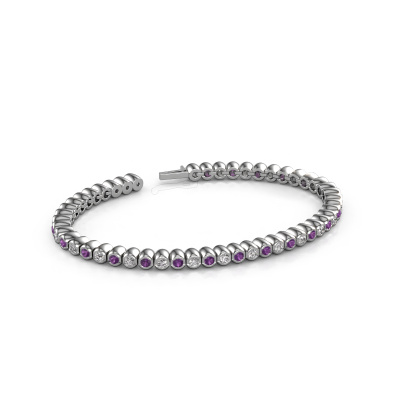 This best price and timeless white gold tennis bracelet can easily be combined with many different styles of fashion. The Bianca 2.4 mm tennis bracelet is pave set with stunning amethysten total 2.4 mm, which are set with great care so light reflects perfectly. Because your fantasy tennis bracelet is handmade, extra care is taken in finishing the tiniest details to perfection. Did you know, the tennis bracelet is named after Chris Evert, the tennis player? She lost her tennis bracelet during the US Open of 1987 and the match was stopped to retrieve her precious diamond line tennis bracelet. The tennis bracelet is called tennis bracelet ever since and many celebrities such as Serena Williams and Katy Perry have been spotted wearing them. Due to its comfort and elegance the tennis bracelet continues to be a popular piece of jewelry. A customized fantasy best price tennis bracelet is the perfect gift! New exquisite designs are added daily by our team of passionate goldsmiths. And each design can be customized. Simply customize the precious metals and the color of gemstones which will be used, for example. This makes your design of the fantasy Bianca 2.4 mm tennis bracelet truly unique!Our team of talented, passionate designers add new tennis bracelet designs to our online collection daily. Our objective in doing so, is to be able to offer you a wide variety of jewels. Please feel free to request a quote if you have specific wishes for your tennis bracelet. We guarantee to make you an offer you can't refuse.By using a combination of the latest modern techniques, combined with ancient crafting, we can make all our tennis bracelets in our own studio. Each jewel is made to order. This is advantageous because we can offer you a price you won't find anywhere else.To make it easier for you, we offer a 30 day return policy. Check our terms and conditions.