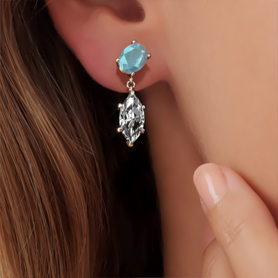 This is our set of modern Toi et Moi OVL-MRQ drop earrings. In this example the drop earrings are set with oval blue topaz. Each of our blue topaz gemstones is carefully selected and positioned in your drop earrings with great precision so light hits the blue topaz from every angle. We believe these affordable white gold drop earrings look best set with colored gemstones. But that is entirely up to you. How do you like these modern white gold drop earrings? Simply customize this Toi et Moi OVL-MRQ drop earrings, using our online tool. Subsequently, your personal affordable Toi et Moi OVL-MRQ drop earrings will be made by hand by our goldsmiths. Precious metals and gemstones can be customized to your liking. Do you have specific preferences which are unavailable in our online tool? Please feel free to contact us. We will customize your personal modern drop earrings to your liking.After receiving your order, our goldsmiths will passionately start the creative process of making your drop earrings in our own studio. Because we don't have a big stockpile, these costs will not be passed on to you. Our pricing is proof of that! We offer top quality jewels at lowest price, guaranteed.To make it easier for you, we offer a 30 day return policy. Check our terms and conditions.