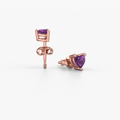 How would you describe your style? Are you looking for something slightly different? These trendy heart rose gold stud earrings are unique and created by our expert goldsmiths. These trendy stud earrings are set with amethyst. Each of the amethysten is carefully selected, because we believe your stud earrings should be adorned with nothing but the most exquisite gemstones. Wouldn't you agree? The Garnet earrings are made to embellish your ears. Each jewel is lovingly made by hand by our goldsmiths.. Our goldsmiths passionately create your customized stud earrings to your liking with the utmost care. The rose gold set stud earrings, as shown here, can be customized using our online tool. Feel free to ask our jewel designers for assistance if you want changes made which are unavailable in our online tool. We are happy to answer your questions.Are you on a budget? Please feel free to contact us, so we can go discuss your options. We offer our stud earrings at guaranteed best price, because we make them to order. You won't find such a price anywhere else! To make it easier for you, we offer a 30 day return policy. Check our terms and conditions.