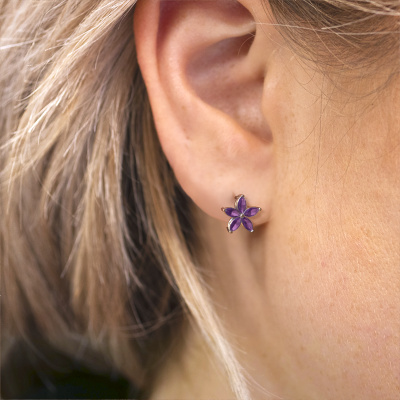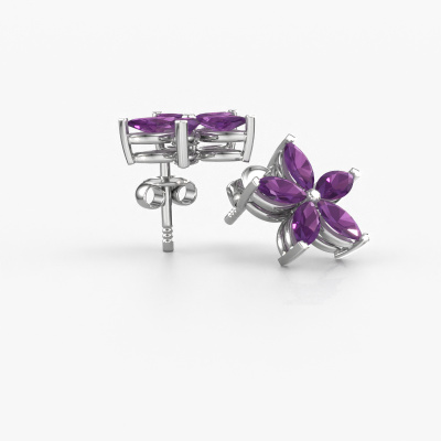 How would you describe your style? Are you looking for something slightly different? These unique cluster white gold stud earrings are unique and created by our expert goldsmiths. These unique stud earrings are set with amethyst. Each of the amethysten is carefully selected, because we believe your stud earrings should be adorned with nothing but the most exquisite gemstones. Wouldn't you agree? The Sylvana earrings are made just for you by our master goldsmith in our own artisan studio.. Our goldsmiths passionately create your customized stud earrings to your liking with the utmost care. The white gold set stud earrings, as shown here, can be customized using our online tool. Feel free to ask our jewel designers for assistance if you want changes made which are unavailable in our online tool. We are happy to answer your questions.Are you on a budget? Please feel free to contact us, so we can go discuss your options. We offer our stud earrings at guaranteed best price, because we make them to order. You won't find such a price anywhere else! To make it easier for you, we offer a 30 day return policy. Check our terms and conditions.