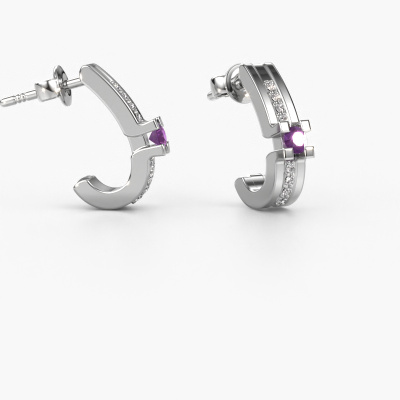 Each modern woman should own her own pair of modern earrings. Buy them from DiamondsByMe. In order to create our exquisite jewels, our expert goldsmiths use the best precious metals and the finest gemstones. Take this modern platinum amethyst set of Myrthe earrings, for example. Each amethyst is selected with great care, because we believe your earrings should only be adorned with the finest amethysten gemstones. Our artisan goldsmiths create your earrings in our own crafting studio and they set the amethyst in the earrings with the utmost care. Subsequently, they are crafted and polished until it is evident: the perfect earrings are done! The Myrthe earrings are made to embellish your ears. Each jewel is lovingly made by hand by our goldsmiths.. The best part of these elegant earrings is that you can customize it to your own liking. Your style, your choice, your earrings. On top of that, your modern platinum earrings will be made by hand with eco-friendly materials! Please feel free to easily customize the earrings, using our online tool. Because we design and deliver our own earrings, we can offer you earrings at a price you won't find anywhere else. earrings are made to order, which helps prevent excess supplies, so we can make you a great price offer. We understand it feels risky, buying your earrings online, but we will gladly assist in the designing process, taking your budget into consideration. To make it easier for you, we offer a 30 day return policy. Check our terms and conditions.