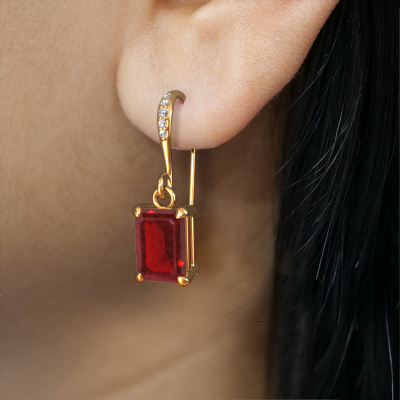 What could possibly be more stunning than a pair of stunning drop earrings? These gold Laurie EME 2 drop earrings are a true eye-catcher. These solitaire drop earrings are set with emerald cut ruby. We collaborate with the best suppliers of gemstones and they select our gemstones with great care. Your drop earrings are made by hand in our own artisan studio by our expert goldsmiths. As soon as you finished designing your classic drop earrings with our online tool, our goldsmiths will start their creative process of making your drop earrings. This will be done with passion and care, according ancient crafting. On top of that, our jewels are made of eco-friendly materials. If you want specific changes made to your Laurie EME 2 drop earrings, that are unavailable in our online tool, please feel free to contact our expert designers.After receiving your order, our goldsmiths will start the creative process of making your Laurie EME 2 drop earrings. We don't keep stock. This is advantageous because these costs will not be passed on to you. Therefore, we can offer jewelry at exceptionally low prices.To make it easier for you, we offer a 30 day return policy. Check our terms and conditions.