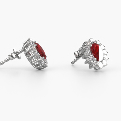 If you are looking for classic and personal earrings, then these will fit you perfectly. You have the option to add your birthstones to these earrings. Each month has its own birthstone. You may use your own birthstone gemstone or that of your children. A priceless gift, even if it is for yourself. Our expert jeweler will set the selected stones in your earrings with utter precision, so light reflects evenly from every angle. Here, 6x4 mm oval ruby gemstones were used to adorn these white gold cluster Margien earrings. The Margien earrings are unique pieces of jewelry because they can be customized to your liking.. The best part of these cluster earrings is that you can customize it to your own liking. Your style, your choice, your earrings. On top of that, your classic white gold earrings will be made by hand with eco-friendly materials! Please feel free to easily customize the earrings, using our online tool. Are you on a budget? Please feel free to contact us, so we can go discuss your options. We offer our earrings at guaranteed best price, because we make them to order. You won't find such a price anywhere else!To make it easier for you, we offer a 30 day return policy. Check our terms and conditions.
