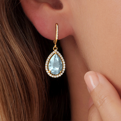 If you are looking for exclusive and personal drop earrings, then these will fit you perfectly. You have the option to add your birthstones to these drop earrings. Each month has its own birthstone. You may use your own birthstone gemstone or that of your children. A priceless gift, even if it is for yourself. Our expert jeweler will set the selected stones in your drop earrings with utter precision, so light reflects evenly from every angle. Here, 12x8 mm pear aquamarine gemstones were used to adorn these gold drop Tilly per 4 drop earrings. The Tilly per 4 earrings are passionately made by one of our master goldsmiths.. The best part of these drop drop earrings is that you can customize it to your own liking. Your style, your choice, your drop earrings. On top of that, your exclusive gold drop earrings will be made by hand with eco-friendly materials! Please feel free to easily customize the drop earrings, using our online tool. By using our modern techniques, we can design and customize the finest quality jewels with the utmost care for you. Our drop earrings are always priced 30 percent lower than other jewelers. We make drop earrings to order so we don't have to maintain a large stock. If you have a certain budget, we are more than happy to advice you accordingly.To make it easier for you, we offer a 30 day return policy. Check our terms and conditions.