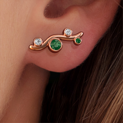How would you describe your style? Are you looking for something slightly different? These fantasy graceful rose gold stud earrings are unique and created by our expert goldsmiths. These fantasy stud earrings are set with emerald. Each of the emeralds is carefully selected, because we believe your stud earrings should be adorned with nothing but the most exquisite gemstones. Wouldn't you agree? The Jin made just for you, with great attention to detail and design.. The best part of these graceful stud earrings is that you can customize it to your own liking. Your style, your choice, your stud earrings. On top of that, your fantasy rose gold stud earrings will be made by hand with eco-friendly materials! Please feel free to easily customize the stud earrings, using our online tool.Because we design and deliver our own stud earrings, we can offer you stud earrings at a price you won't find anywhere else. stud earrings are made to order, which helps prevent excess supplies, so we can make you a great price offer. We understand it feels risky, buying your stud earrings online, but we will gladly assist in the designing process, taking your budget into consideration. To make it easier for you, we offer a 30 day return policy. Check our terms and conditions.