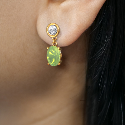 What could possibly be more stunning than a pair of stunning drop earrings? These gold Lacey OVL drop earrings are a true eye-catcher. These elegant drop earrings are set with oval peridot. We collaborate with the best suppliers of gemstones and they select our gemstones with great care. Your drop earrings are made by hand in our own artisan studio by our expert goldsmiths. The best part of these elegant drop earrings is that you can customize it to your own liking. Your style, your choice, your drop earrings. On top of that, your exclusive gold drop earrings will be made by hand with eco-friendly materials! Please feel free to easily customize the drop earrings, using our online tool.Because we design and deliver our own drop earrings, we can offer you drop earrings at a price you won't find anywhere else. drop earrings are made to order, which helps prevent excess supplies, so we can make you a great price offer. We understand it feels risky, buying your drop earrings online, but we will gladly assist in the designing process, taking your budget into consideration.To make it easier for you, we offer a 30 day return policy. Check our terms and conditions.