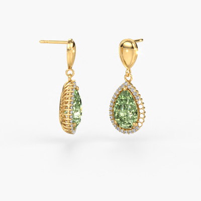 With a pair of exclusive drop earrings, every woman truly stands out. At DiamondsByMe, we create exclusive and extraordinary jewelry and we make use of the finest precious metals and gemstones. These exclusive gold drop earrings are a true work of art! Each tiny detail has been made with patience and passion by our expert jeweler. This requires a keen eye and skillful hand in order for the ring to be carefully created to perfection. And this is exactly what our expert jewelers strive for, perfection! The exquisite green lab grown diamondd are set in a way making them seem to shine even brighter. This gives the drop earrings an extra glamorous look. Shown above are our gold Tilly per 1 drop earrings, set with pear green lab grown diamond. The Tilly per 1 earrings are made just for you by our master goldsmith in our own artisan studio.. As soon as you finished designing your exclusive drop earrings with our online tool, our goldsmiths will start their creative process of making your drop earrings. This will be done with passion and care, according ancient crafting. On top of that, our jewels are made of eco-friendly materials. If you want specific changes made to your Tilly per 1 drop earrings, that are unavailable in our online tool, please feel free to contact our expert designers. Because we design and deliver our own drop earrings, we can offer you drop earrings at a price you won't find anywhere else. drop earrings are made to order, which helps prevent excess supplies, so we can make you a great price offer. We understand it feels risky, buying your drop earrings online, but we will gladly assist in the designing process, taking your budget into consideration. To make it easier for you, we offer a 30 day return policy. Check our terms and conditions.