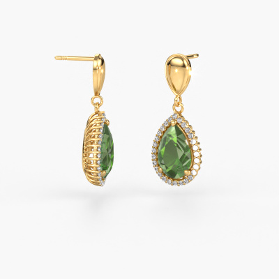 With a pair of exclusive drop earrings, every woman truly stands out. At DiamondsByMe, we create exclusive and extraordinary jewelry and we make use of the finest precious metals and gemstones. These exclusive gold drop earrings are a true work of art! Each tiny detail has been made with patience and passion by our expert jeweler. This requires a keen eye and skillful hand in order for the ring to be carefully created to perfection. And this is exactly what our expert jewelers strive for, perfection! The exquisite tourmaline green are set in a way making them seem to shine even brighter. This gives the drop earrings an extra glamorous look. Shown above are our gold Tilly per 1 drop earrings, set with pear tourmaline green. The Tilly per 1 earrings are made just for you by our master goldsmith in our own artisan studio.. As soon as you finished designing your exclusive drop earrings with our online tool, our goldsmiths will start their creative process of making your drop earrings. This will be done with passion and care, according ancient crafting. On top of that, our jewels are made of eco-friendly materials. If you want specific changes made to your Tilly per 1 drop earrings, that are unavailable in our online tool, please feel free to contact our expert designers. Because we design and deliver our own drop earrings, we can offer you drop earrings at a price you won't find anywhere else. drop earrings are made to order, which helps prevent excess supplies, so we can make you a great price offer. We understand it feels risky, buying your drop earrings online, but we will gladly assist in the designing process, taking your budget into consideration. To make it easier for you, we offer a 30 day return policy. Check our terms and conditions.