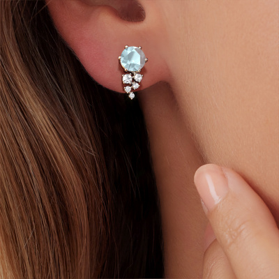If you are looking for trendy and personal earrings, then these will fit you perfectly. You have the option to add your birthstones to these earrings. Each month has its own birthstone. You may use your own birthstone gemstone or that of your children. A priceless gift, even if it is for yourself. Our expert jeweler will set the selected stones in your earrings with utter precision, so light reflects evenly from every angle. Here, 6 mm round aquamarine gemstones were used to adorn these white gold graceful Royce earrings. The Royce earrings are passionately made by one of our master goldsmiths.. The best part of these graceful earrings is that you can customize it to your own liking. Your style, your choice, your earrings. On top of that, your trendy white gold earrings will be made by hand with eco-friendly materials! Please feel free to easily customize the earrings, using our online tool. After receiving your order, our goldsmiths will passionately start the creative process of making your earrings in our own studio. Because we don't have a big stockpile, these costs will not be passed on to you. Our pricing is proof of that! We offer top quality jewels at lowest price, guaranteed.To make it easier for you, we offer a 30 day return policy. Check our terms and conditions.
