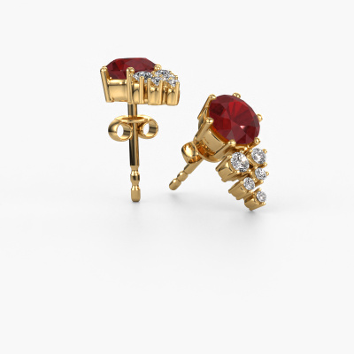 If you are looking for trendy and personal earrings, then these will fit you perfectly. You have the option to add your birthstones to these earrings. Each month has its own birthstone. You may use your own birthstone gemstone or that of your children. A priceless gift, even if it is for yourself. Our expert jeweler will set the selected stones in your earrings with utter precision, so light reflects evenly from every angle. Here, 6 mm round ruby gemstones were used to adorn these gold graceful Royce earrings. The Royce earrings are passionately made by one of our master goldsmiths.. The best part of these graceful earrings is that you can customize it to your own liking. Your style, your choice, your earrings. On top of that, your trendy gold earrings will be made by hand with eco-friendly materials! Please feel free to easily customize the earrings, using our online tool. After receiving your order, our goldsmiths will passionately start the creative process of making your earrings in our own studio. Because we don't have a big stockpile, these costs will not be passed on to you. Our pricing is proof of that! We offer top quality jewels at lowest price, guaranteed.To make it easier for you, we offer a 30 day return policy. Check our terms and conditions.