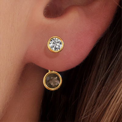 We believe this set of hanging Halle earrings, set with exquisite round smokey quartz, look best when set with diamonds. But the best part is that you get to choose your own birthstones to customize the design Halle gold earrings to your liking. In the example shown above they are set with smokey quartz 6 mm. Each gemstone is selected with great care and the utmost precision for a maximum shine. Because we design and deliver our own earrings, we can offer you earrings at a price you won't find anywhere else. earrings are made to order, which helps prevent excess supplies, so we can make you a great price offer. We understand it feels risky, buying your earrings online, but we will gladly assist in the designing process, taking your budget into consideration.To make it easier for you, we offer a 30 day return policy. Check our terms and conditions.