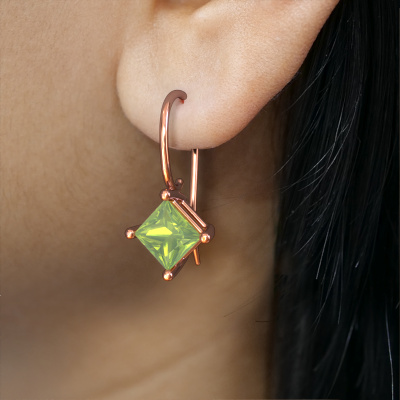 What could possibly be more stunning than a pair of stunning drop earrings? These rose gold Cleo SQR drop earrings are a true eye-catcher. These 4 prongs drop earrings are set with princess peridot. We collaborate with the best suppliers of gemstones and they select our gemstones with great care. Your drop earrings are made by hand in our own artisan studio by our expert goldsmiths. Customized modern 4 prongs drop earrings are the perfect gift! New exquisite designs are added daily by our team of passionate goldsmiths. And each design can be customized. Simply customize the precious metals and the color of gemstones which will be used, for example. This makes your design of the modern Cleo SQR drop earrings truly unique!Are you on a budget? Please feel free to contact us, so we can go discuss your options. We offer our drop earrings at guaranteed best price, because we make them to order. You won't find such a price anywhere else!To make it easier for you, we offer a 30 day return policy. Check our terms and conditions.