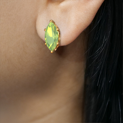 Solitaire stud earrings are fantasy yet fashionable pieces of jewelry. In solitaire stud earrings, the prong setting is open and only 1 stone is set, which helps reflect light on the gemstone from every angle. Because the peridot are positioned higher, these fantasy stud earrings become truly eye-catching. We carefully create each detail of these solitaire stud earrings by hand. Our expert goldsmiths set the peridot in these gold stud earrings with the utmost precision, so light reflects evenly from every angle. The stud earrings are set with 10x5 mm marquise peridot. The Sam MRQ earrings are passionately made by one of our master goldsmiths.. Our goldsmiths passionately create your customized stud earrings to your liking with the utmost care. The gold set stud earrings, as shown here, can be customized using our online tool. Feel free to ask our jewel designers for assistance if you want changes made which are unavailable in our online tool. We are happy to answer your questions. By using a combination of the latest modern techniques, combined with ancient crafting, we can make all our stud earrings in our own studio. Each jewel is made to order. This is advantageous because we can offer you a price you won't find anywhere else. To make it easier for you, we offer a 30 day return policy. Check our terms and conditions.