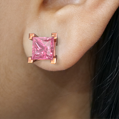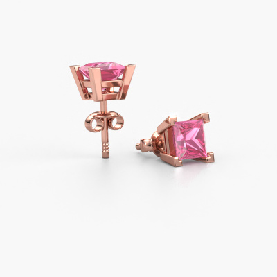 The solitaire rose gold Ariane stud earrings are set with stunning princess pink sapphire. These stud earrings are ideally combined with colored gemstones, but if you prefer other gemstones, feel free to choose from our collection. Our expert jewelers would love to create handmade stud earrings for you in our own crafting studio. We use a unique concept, a perfect combination of ancient craftsmanship and the latest modern techniques. This enables us to design your stud earrings to perfection. The stud earrings, as shown here, are set with pink sapphire 5 mm. The best part of these solitaire stud earrings is that you can customize it to your own liking. Your style, your choice, your stud earrings. On top of that, your modern rose gold stud earrings will be made by hand with eco-friendly materials! Please feel free to easily customize the stud earrings, using our online tool.De Ariane earrings are passionately made by one of our master goldsmiths.Because we design and deliver our own stud earrings, we can offer you stud earrings at a price you won't find anywhere else. stud earrings are made to order, which helps prevent excess supplies, so we can make you a great price offer. We understand it feels risky, buying your stud earrings online, but we will gladly assist in the designing process, taking your budget into consideration.To make it easier for you, we offer a 30 day return policy. Check our terms and conditions.