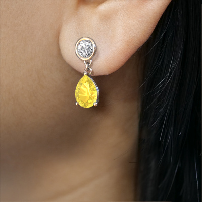 What could possibly be more stunning than a pair of stunning drop earrings? These platinum Lacey drop earrings are a true eye-catcher. These graceful drop earrings are set with pear yellow sapphire. We collaborate with the best suppliers of