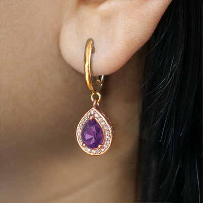 With a pair of exclusive drop earrings, every woman truly stands out. At DiamondsByMe, we create unique and extraordinary jewelry and we make use of the finest precious metals and gemstones. These exclusive rose gold drop earrings are a true work of art! Each tiny detail has been made with patience and passion by our expert jeweler. This requires a keen eye and skillful hand in order for the ring to be carefully created to perfection. And this is exactly what our expert jewelers strive for, perfection! The exquisite amethysten are set in a way making them seem to shine even brighter. This gives the drop earrings an extra glamorous look. Shown above are our rose gold Ginger 1 drop earrings, set with pear amethyst. The Ginger 1 earrings are made just for you by our master goldsmith in our own artisan studio.. Customized unique graceful drop earrings are the perfect gift! New exquisite designs are added daily by our team of passionate goldsmiths. And each design can be customized. Simply customize the precious metals and the color of gemstones which will be used, for example. This makes your design of the unique Ginger 1 drop earrings truly unique! After receiving your order, our goldsmiths will passionately start the creative process of making your drop earrings in our own studio. Because we don't have a big stockpile, these costs will not be passed on to you. Our pricing is proof of that! We offer top quality jewels at lowest price, guaranteed. To make it easier for you, we offer a 30 day return policy. Check our terms and conditions.