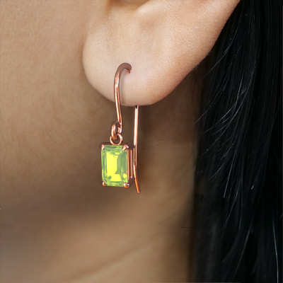 What could possibly be more stunning than a pair of stunning drop earrings? These rose gold Laurie EME 1 drop earrings are a true eye-catcher. These solitaire drop earrings are set with emerald cut peridot. We collaborate with the best suppliers of gemstones and they select our gemstones with great care. Your drop earrings are made by hand in our own artisan studio by our expert goldsmiths. Our goldsmiths passionately create your customized drop earrings to your liking with the utmost care. The rose gold set drop earrings, as shown here, can be customized using our online tool. Feel free to ask our jewel designers for assistance if you want changes made which are unavailable in our online tool. We are happy to answer your questions.Are you on a budget? Please feel free to contact us, so we can go discuss your options. We offer our drop earrings at guaranteed best price, because we make them to order. You won't find such a price anywhere else!To make it easier for you, we offer a 30 day return policy. Check our terms and conditions.