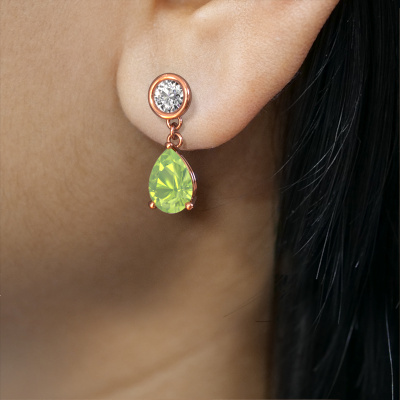 What could possibly be more stunning than a pair of stunning drop earrings? These rose gold Lacey drop earrings are a true eye-catcher. These graceful drop earrings are set with pear peridot. We collaborate with the best suppliers of gemstones and they select our gemstones with great care. Your drop earrings are made by hand in our own artisan studio by our expert goldsmiths. Customized fantasy graceful drop earrings are the perfect gift! New exquisite designs are added daily by our team of passionate goldsmiths. And each design can be customized. Simply customize the precious metals and the color of gemstones which will be used, for example. This makes your design of the fantasy Lacey drop earrings truly unique!After receiving your order, our goldsmiths will passionately start the creative process of making your drop earrings in our own studio. Because we don't have a big stockpile, these costs will not be passed on to you. Our pricing is proof of that! We offer top quality jewels at lowest price, guaranteed.To make it easier for you, we offer a 30 day return policy. Check our terms and conditions.