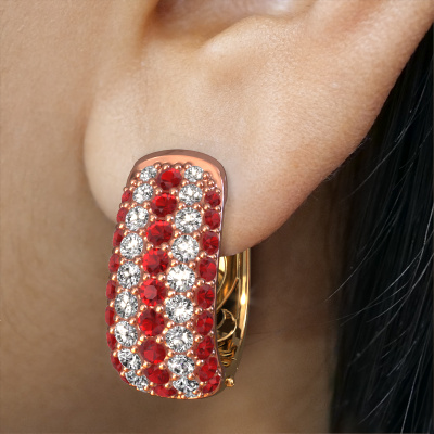 This set of wide Danika 8.5 B hoop earrings are beautiful small hoop earrings to finish off your look. Our expert jewelers combine the latest techniques with ancient craftsmanship. They make your hoop earrings by hand in our own crafting studio. The ruby of your choosing are set in your hoop earrings with the utmost precision, so light reflects evenly from every angle. In the end you get stunning, unique hoop earrings that match your own style perfectly! Take these rose gold hoop earrings set with ruby 1.1 mm, for example. Customized fantasy wide hoop earrings are the perfect gift! New exquisite designs are added daily by our team of passionate goldsmiths. And each design can be customized. Simply customize the precious metals and the color of gemstones which will be used, for example. This makes your design of the fantasy Danika 8.5 B hoop earrings truly unique!The Danika 8.5 B earrings are made just for you by our master goldsmith in our own artisan studio.After receiving your order, our goldsmiths will start the creative process of making your Danika 8.5 B hoop earrings. We don't keep stock. This is advantageous because these costs will not be passed on to you. Therefore, we can offer jewelry at exceptionally low prices.To make it easier for you, we offer a 30 day return policy. Check our terms and conditions.