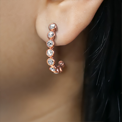 The Nova stud earrings are set with stunning round zirconia. We prefer them set with diamonds. But the best part, is that you get to choose. The Nova, as shown here, are made of rose gold. You are free to choose your gemstones and to customize the stud earrings to your liking. We carefully select each gemstone. We create your stud earrings by hand in our own artisan studio and make use of the latest techniques, combined with ancient craftsmanship. Easily customized to your liking with our online tool. Take these stud earrings set with 2.2 mm zirconia, for example. The Nova made just for you, with great attention to detail and design.By using a combination of the latest modern techniques, combined with ancient crafting, we can make all our stud earrings in our own studio. Each jewel is made to order. This is advantageous because we can offer you a price you won't find anywhere else.To make it easier for you, we offer a 30 day return policy. Check our terms and conditions.