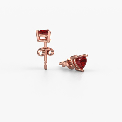 How would you describe your style? Are you looking for something slightly different? These trendy heart rose gold stud earrings are unique and created by our expert goldsmiths. These trendy stud earrings are set with ruby. Each of the ruby is carefully selected, because we believe your stud earrings should be adorned with nothing but the most exquisite gemstones. Wouldn't you agree? The Garnet earrings are made to embellish your ears. Each jewel is lovingly made by hand by our goldsmiths.. Our goldsmiths passionately create your customized stud earrings to your liking with the utmost care. The rose gold set stud earrings, as shown here, can be customized using our online tool. Feel free to ask our jewel designers for assistance if you want changes made which are unavailable in our online tool. We are happy to answer your questions.Are you on a budget? Please feel free to contact us, so we can go discuss your options. We offer our stud earrings at guaranteed best price, because we make them to order. You won't find such a price anywhere else! To make it easier for you, we offer a 30 day return policy. Check our terms and conditions.