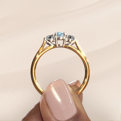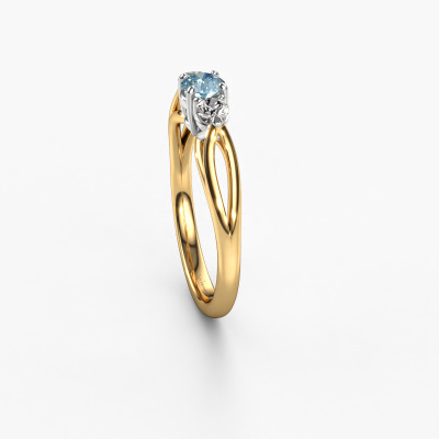 This 14 Carat gold ring is called Amie RND and is set with 4.2 mm blue lab grown diamond. This exclusive gold 3-stone engagement ring is a true work of art! The ornaments are crafted with a lot of patience and great passion. In order to create this ring with great precision, this craft requires a keen eye and skillful hand. A challenge which ignites a fire in our expert goldsmith. The exquisite blue lab grown diamonds are set in a special way so they stand out even more. This gives the ring an even more glamorous appearance. The graceful engagement ring is actually unique on its own because of the gemstones which we carefully select especially for this ring. On top of that you select the precious metals which will be used to create a unique ring for the most extraordinary woman in your life! This jewel is made with passion and love by one of our master goldsmiths.