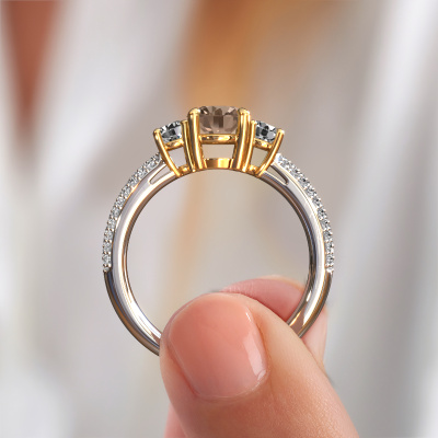 This 14 Carat white gold ring is called Marielle RND and is set with 1.47 crt brown diamond. This exclusive white gold 3-stone engagement ring is a true work of art! The ornaments are crafted with a lot of patience and great passion. In order to create this ring with great precision, this craft requires a keen eye and skillful hand. A challenge which ignites a fire in our expert goldsmith. The exquisite brown diamonds are set in a special way so they stand out even more. This gives the ring an even more glamorous appearance. The tasteful engagement ring is actually unique on its own because of the gemstones which we carefully select especially for this ring. On top of that you select the precious metals which will be used to create a unique ring for the most extraordinary woman in your life! This jewel is made with passion and love by one of our master goldsmiths.By using a combination of the latest modern techniques, combined with ancient crafting, we can make all our engagement rings in our own studio. Each jewel is made to order. This is advantageous because we can offer you a price you won't find anywhere else.Our designers and goldsmiths work together each day, creating new jewels. Perhaps you have found a nice exclusive engagement ring somewhere, which can be used to customize your unique ring. Please feel free to contact us. We will make you an offer, based on a fair price/ quality ratio, which will amaze you.To make it easier for you, we offer a 30 day return policy. Check our terms and conditions.