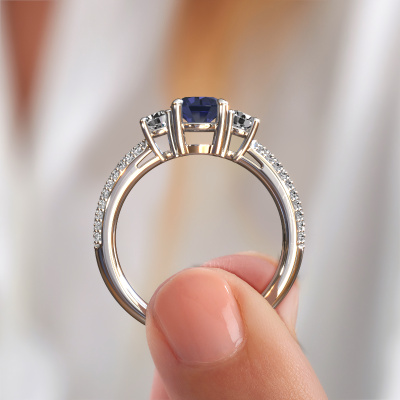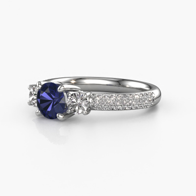 This platinum ring is called Marielle RND and is set with 6 mm sapphire. This exclusive platinum 3-stone engagement ring is a true work of art! The ornaments are crafted with a lot of patience and great passion. In order to create this ring with great precision, this craft requires a keen eye and skillful hand. A challenge which ignites a fire in our expert goldsmith. The exquisite sapphire are set in a special way so they stand out even more. This gives the ring an even more glamorous appearance. The tasteful engagement ring is actually unique on its own because of the gemstones which we carefully select especially for this ring. On top of that you select the precious metals which will be used to create a unique ring for the most extraordinary woman in your life! This jewel is made with passion and love by one of our master goldsmiths.By using a combination of the latest modern techniques, combined with ancient crafting, we can make all our engagement rings in our own studio. Each jewel is made to order. This is advantageous because we can offer you a price you won't find anywhere else.Our designers and goldsmiths work together each day, creating new jewels. Perhaps you have found a nice exclusive engagement ring somewhere, which can be used to customize your unique ring. Please feel free to contact us. We will make you an offer, based on a fair price/ quality ratio, which will amaze you.To make it easier for you, we offer a 30 day return policy. Check our terms and conditions.