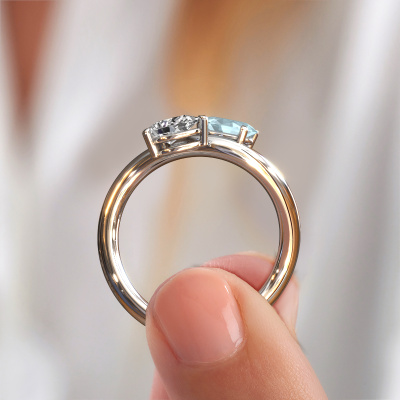 This 14 Carat white gold ring is called Chloe OVL-PER and is set with aquamarine. How would you describe the style of the love of your life? Does she have a unique sense of style? This stunning twist white gold engagement ring can be custom made to your own or her liking. Our aquamarine gemstones have been carefully selected because we believe your unique engagement ring must be adorned with nothing but the most beautiful gemstone. Don't you agree? This jewel is created to add sparkle to your finger, each jewel is lovingly made by hand by our goldsmiths.Because we design and deliver our own rings, we can offer you a engagement ring at a price you won't find anywhere else. A ring is made to order, which helps prevent excess supplies, so we can make you a great price offer. We understand it feels risky, buying your engagement ring online, but we will gladly assist in the designing process, taking your budget into consideration.Do you have a specific ring in mind? One you came across somewhere. Please feel free to tell us your wishes and we will turn your design into a unique engagement ring. You can follow the development of your ring design because we use 3D drawings. This gives you a realistic preview of your design. We will gladly send you a non-binding offer, based on a fair price/ quality ratio. It will amaze you.To make it easier for you, we offer a 30 day return policy. Check our terms and conditions.
