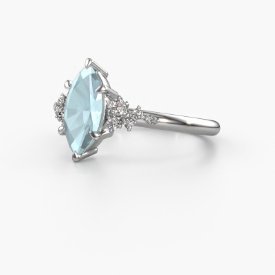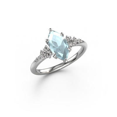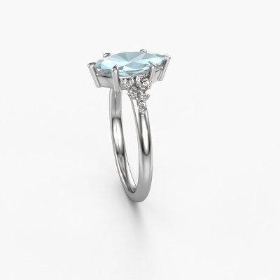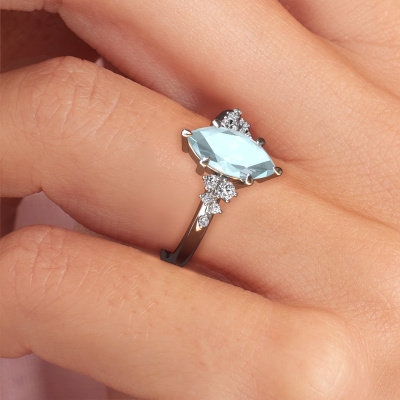 The ring shown above is called the Royce MRQ. We call this type of ring a pavé solitaire ring because it has one center gemstone and a band that is also pave set with gemstones. This engagement ring is made in 14 Carat white gold set with a 11x5.5