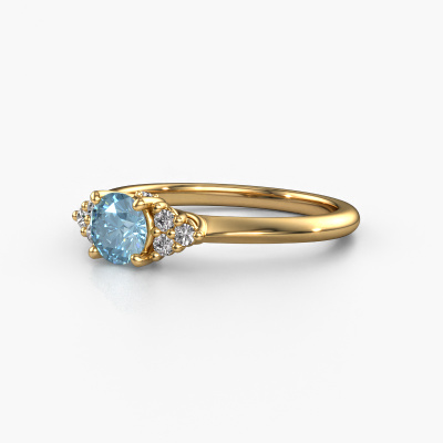 This 14 Carat gold ring is called Felipa RND and is set with 5 mm blue lab grown diamond. What is it that makes your relationship unique? What is it about her that makes you want to bend down on one knee? The unique bond between the two of you is emphasized by an equally unique ring. A one of a kind ajour 3-stone engagement ring made especially for her. That is why this fantasy ring fits her like a glove. Each specific detail of this ajour gold blue lab grown diamond set engagement ring is hand-picked, crafted and polished by our expert goldsmith. The result is an exquisite ring, unique and perfectly crafted to perfection. That is what our expert Goldsmiths strive for. This jewel is made just for you by our master goldsmiths in our own studio.After receiving your order, our goldsmiths will passionately start the creative process of making your engagement ring in our own studio. Because we don't have a big stockpile, these costs will not be passed on to you. Our pricing is proof of that! We offer top quality jewels at lowest price, guaranteed.Have you found a specific engagement ring somewhere which you would like to give to your loved one? Please feel free to express your wishes to our jewel designers because we would be honored to turn your design into a fantasy engagement ring. You can follow the development of your ring design because we use 3D drawings. This gives you a realistic preview of how your design will look. You can also preorder a dummy. A dummy is a plastic ring, which can be shaped according your ring design. You can try it on and check if its width and size are suitable for you. We will gladly send you a non-binding offer, based on a fair price/ quality ratio. It will amaze you, considering the quality of the ring and gemstones.To make it easier for you, we offer a 30 day return policy. Check our terms and conditions.