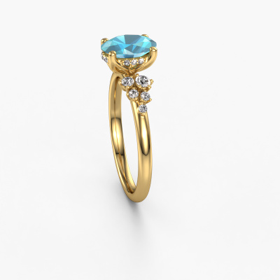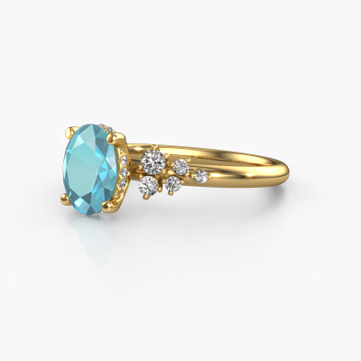 This 14 Carat gold ring is called Emma OVL and is set with blue topaz. How would you describe the style of the love of your life? Does she have a unique sense of style? This stunning sublime gold engagement ring can be custom made to your own or her liking. Our blue topaz gemstones have been carefully selected because we believe your fantasy engagement ring must be adorned with nothing but the most beautiful gemstone. Don't you agree? This jewel is made by a team of passionate goldsmiths and jewel designers. This will make your crown jewel truly eye-catching.By using a combination of the latest modern techniques, combined with ancient crafting, we can make all our engagement rings in our own studio. Each jewel is made to order. This is advantageous because we can offer you a price you won't find anywhere else.Different styles of new rings are made daily by our team. Perhaps you have found a pavé solitaire engagement ring somewhere. One you would like to give to your loved one. Please feel free to share your thoughts and design with our jewel designers. We would love to turn your design into a fantasy engagement ring. You can follow the development of your ring design because we use very detailed 3D drawings. On top of that, you can order a dummy of the design. A dummy is a plastic ring, which can be shaped according your ring design. You can try it on and check if the engagement ring is up to standard. We will gladly send you a non-binding offer, based on a fair price/ quality ratio. The offer will baffle you, considering the quality of the ring and gemstones.To make it easier for you, we offer a 30 day return policy. Check our terms and conditions.